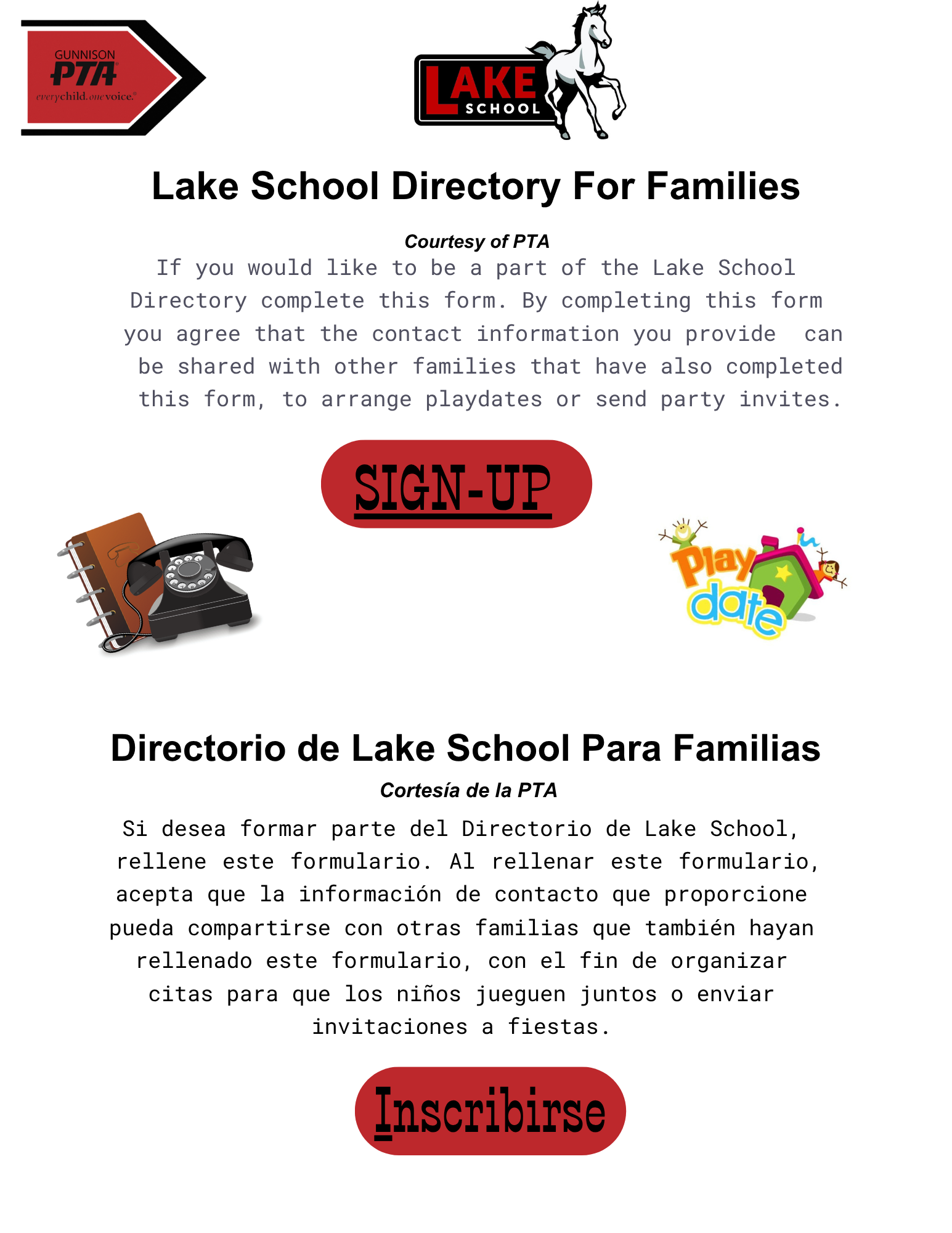 La Asociación de Padres y Maestros (PTA) de Gunnison Elementary School y Lake School es un recurso valioso para las comunidades de ambas escuelas, gracias a la colaboración con el personal escolar, socios comunitarios, estudiantes y familias. Somos un grupo de padres, familiares, maestros y administradores que trabajamos juntos para crear la mejor experiencia posible para nuestros estudiantes.
